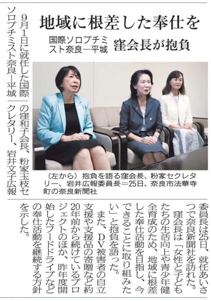 9月19日奈良市長、大和郡山市長、9月25日奈良新聞社、産経新聞社、奈良テレビ放送局の表敬訪問をさせて頂きました。